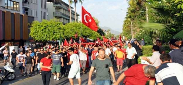 Alanya'da şehitlere sahip çıkmak ve terörü lanetlemek için düzenlenen yürüyüşe katılan gençlerden 4'ü çocuk toplam 37 kişi gözaltında tutuluyor. Gece geç saatlere kadar çarşı merkezinde protesto yürüyüşüne devam eden grup polisin biber gazlı müdahalesi ile dağıtılırken, 37 kişi gözaltına alınarak karakola götürüldü. Sabah saatlerine kadar gözaltında tutularak ifadeleri alınangençlerin gün içerisinde serbest bırakılmaları bekleniyor.