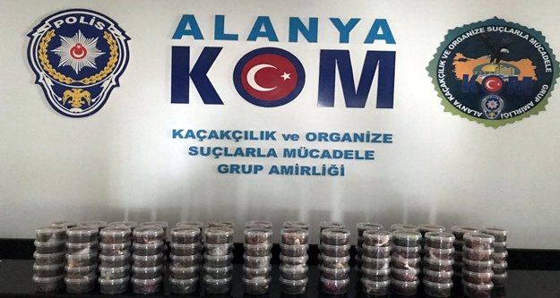 Alanya'da, kaçak olduğu tespit edilen 27 kilo nargile tütünü ele geçirilirken, olayla ilgili bir şüpheli gözaltına alındı.