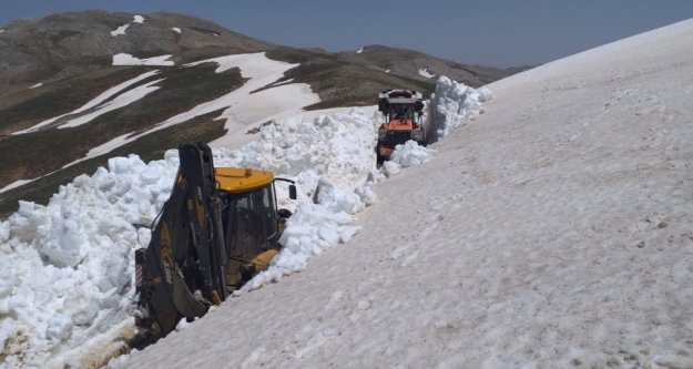 Antalya’da Mayıs ayında 30 derece hava sıcaklığı yaşanırken yaylalarında karla mücadele çalışmalarına devam ediliyor. Antalya Büyükşehir Belediyesi Kırsal Hizmetler Dairesi Başkanlığı ekipleri Manavgat ve Akseki’nin yaz ayında sık kullandığı Göktepe Yayla yolunun karla kaplı kısmını açmak için çalışıyor. 4.5 metreyi bulan karlı yolda ekiplerin çalışmaları tüm hızıyla sürüyor. Kar kalınlığı nedeniyle bazen iş makineleri bile görünmez duruma gelebiliyor. Uzun zamandır karla kapalı olan Göktepe yayla yolu ekiplerin hummalı çalışması sonucu vatandaşların ulaşımına açılacak.