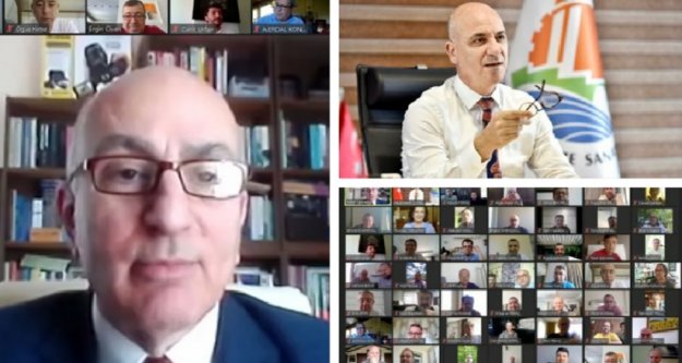 Türkiye’nin önde gelen iktisatçılarından Hazine eski müsteşarı Dr. Mahfi Eğilmez, Antalya Organize Sanayi Bölgesi Yönetim Kurulu Başkanı Ali Bahar’ın davetlisi olarak Bölge sanayicileri ve Antalya iş dünyasının temsilcileri ile video konferans yöntemiyle bir söyleşi gerçekleştirdi. Ramazan Bayramı’nın son gününde gerçekleşen söyleşi toplantısına Antalya Bilim Üniversitesi Rektörü Prof. Dr. İsmail Yüksek, ATSO Başkan Yardımcısı Mızrab Cihangir Deniz, ATSO Yönetim Kurulu Üyesi Murat Totoş, Antalya Ticaret Borsası Yönetim Kurulu Başkanı Ali Çandır, Batı Akdeniz Sanayi ve İş Dünyası Federasyonu Başkanı Abdullah Erdoğan, Antalya Sanayici ve İş İnsanları Derneği Başkanı Akın Akıncı, Konyaaltı Sanayici ve İş Adamları Derneği Başkanı İlhami Kaplan, Antalya Organize Sanayici İş İnsanları Derneği Başkanı Ahmet Kasapoğlu, Anadolu Aslanları İş Adamları Derneği Antalya Şube Başkanı Cahit Urfan, Yörük Sanayici ve İş İnsanları Derneği Başkanı M. Aykut Ege, Antalya İş İnsanları Derneği Başkanı Ferhat Yıldız, Genç Organize Sanayi Derneği Başkanı Elçin Ekici Öztürk, Antalya İş Kadınları Derneği Başkanı Gülseren Açar, Akdeniz Girişimci İş Kadınları Derneği Başkanı Dr. Figen Sayın, Alanya Sanayici ve İş Adamları Derneği Başkanı Akın Tabaklar, Organize Sanayi Bölgeleri Üst Kuruluşu Yönetim Kurulu Üyeleri Erdim Noyan ve Salih Esen ile birlikte 200’e yakın bölge sanayicisi katıldı.