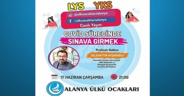 Yapılan açıklamada "Alanya Ülkü Ocakları olarak, temel ilke ve hedeflerimizin başında Türk Gençliğini geleceğe hazırlamak gelir. COVID19 sürecinde milyonlarca gencimizin gireceği LYS ve YKS sınavları öncesinde Prof. Dr. Selahattin Avşaroğlu’nun “COVID Sürecinde Sınava Girmek” adlı canlı yayınına tüm gençlerimiz ve aileleri davetlidir. Program 17 Haziran Çarşamba saat 21.00'da ulkuocaklarialanya sosyal medya adresi üzerinden izlenebilir" ifadeleri kullanıldı.