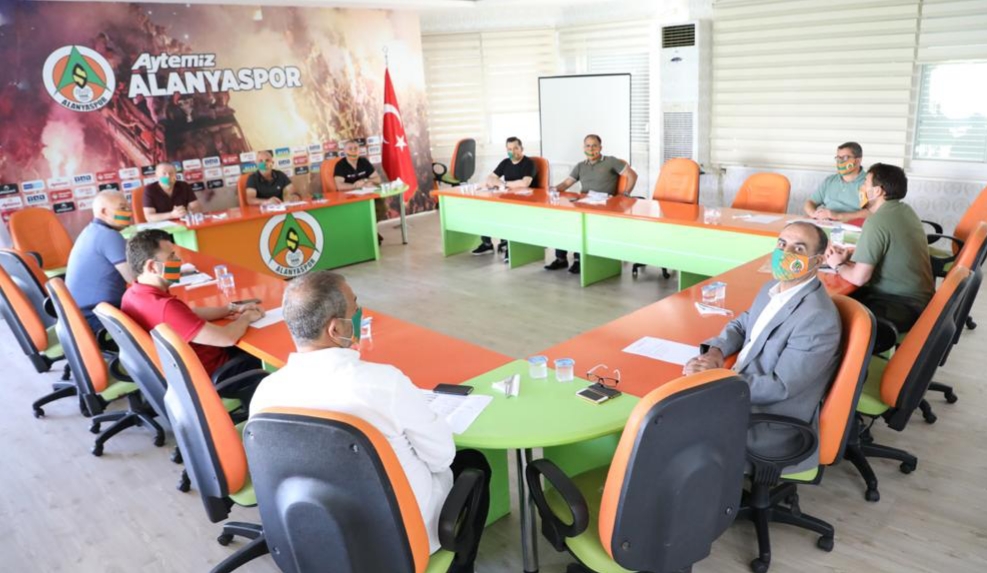 Türkiye’de olduğu gibi Alanya’da da korona virüs tedbirleri kapsamında birçok etkinliğe ve sosyal mesafe sebebiyle ara verilmişti. Bugün 2 aylık bir aradan sonra ilk defa Alanyaspor Başkanı Hasan Çavuşoğlu ile birlikte bir araya gelen Aytemiz Alanyaspor yönetimi toplantı yaptı. Haftalık toplantıda birçok konuya değinilirken sosyal mesafe tedbirlerinin alınması ve Alanyaspor logolu maskeler dikkatlerden kaçmadı. Güncelleme Tarihi: 08 Haziran 2020, 18:31