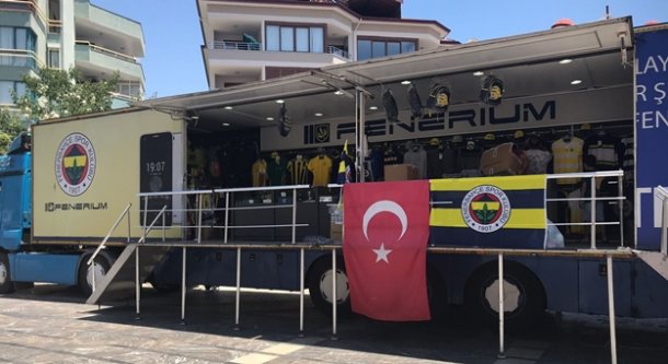 Fenerbahçe Spor Kulübü’nün ürünlerinin satışını yapan Fenerium Mağazası’nın gezici TIR’ı Alanya’ya geldi.