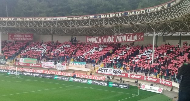 Koreografinin yanı sıra tribünlerdeki 'Şehitler Ölmez Vatan Bölünmez' ve 'Kanımızla Suladık Biz Vatan Gülünü' pankartları dikkat çekti. Maç öncesi Afrin'deki şehitlerimiz için 1 dakikalık saygı duruşu yapıldı ve İstiklal Marşı okundu.