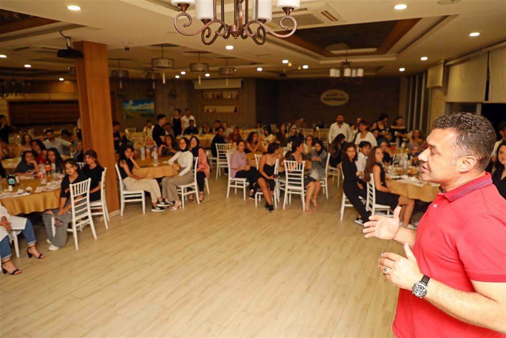 Alanya Belediye Başkanı Adem Murat Yücel, kırsal mahallelerde yaşayan, dar gelirli öğrenciler için hizmete kazandırdığı Alanya Belediyesi Oba Kız Öğrenci Yurdu ve Fahri Gürses Etüt ve Destek Eğitim Kursu’nun öğrencileri ve öğretmenleriyle moral motivasyon yemeğinde bir araya geldi. Alanya Öğretmen Evi’nde gerçekleşen organizasyona Alanya Belediye Başkanı Adem Murat Yücel, Alanya Belediyesi Sosyal Yardım İşleri Müdürü Hüseyin Doğan, kurumlarda eğitim veren öğretmenler ve eğitim gören öğrenciler katıldı.