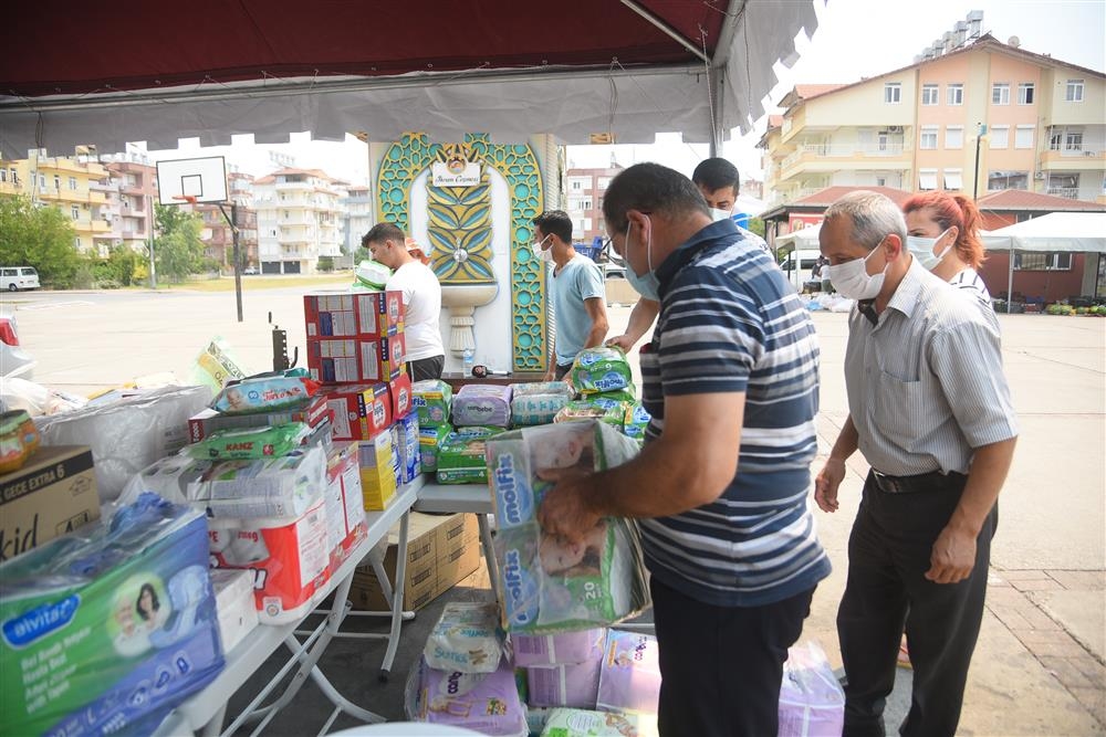 Alanya Belediye Başkanı Adem Murat Yücel’in talimatı ile Sosyal Yardım İşleri Müdürlüğü tarafından yangının 2. gününde Manavgat’ta kurulan yardım çadırından, afet bölgesine temel ihtiyaç malzemelerinin ulaştırılmasına devam ediliyor. Manavgat’ta kurulan yardım çadırlarından afetzedelere üç öğün sandviç, sıcak çorba, su ve ekmek ikramı yapan ekipler, kişisel temizlik malzemeleri, kuru gıda, kıyafet, bebek maması, bebek bezi, temel gıda maddeleri ve su dağıtımı yapıyor.