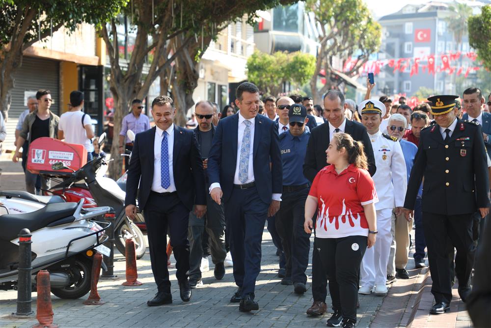 19 Mayıs Atatürk’ü Anma Gençlik ve Spor Bayramı programları Atatürk Anıtı önünde yapılan çelenk sunma töreni ile başladı. Programa Alanya Kaymakamı Fatih Ürkmezer, Alanya Belediye Başkanı Adem Murat Yücel, Alanya İlçe Gençlik ve Spor Müdürü Emre Kıldırgıcı, siyasi parti başkanları, oda ve STK temsilcileri katıldı. Törenin ardından protokol üyeleri ve gençler hep birlikte İskele Şelale Önüne yürüyüş düzenlediler. Bayraklarla büyük bir coşkuyla yapılan yürüyüşün ardından program Saygı Duruşu ve İstiklal Marşı ile başladı.