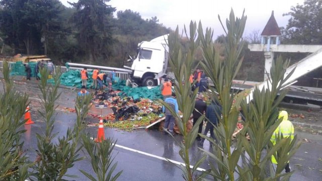 Alanya'da sebze ve meyve yüklü araç devrildi