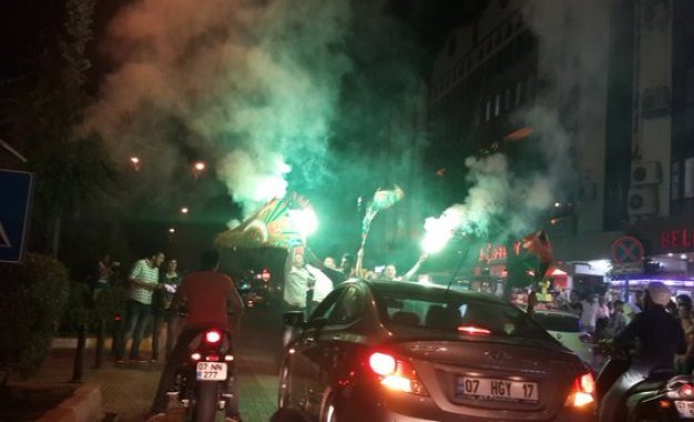 Alanyaspor'un Adana Demirspor'u penaltı atışları geçip Süper Lig'e çıkması Alanya halkını coşturdu. Araçlarla sokaklara çıkıp konvoy yapan halk şampiyonluğu kutluyor.