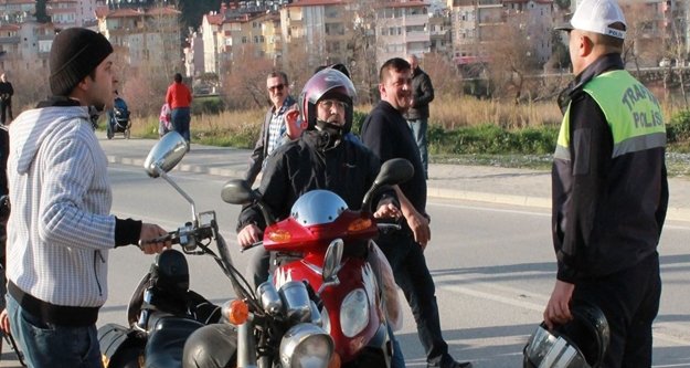 Manavgat’ın değişik noktalarında motosiklet denetimi yapan ekipler, başta kask olmak üzere sürücünün eksikleri konusunda taviz vermiyor. Trafik görevlileri durdurdukları sürücülerin eksiklerini kontrol ettikten ve gerekli yasal işlemi yaptıktan sonra kurallara uymaları konusunda tavsiyelerde bulunmayı ihmal etmiyor.