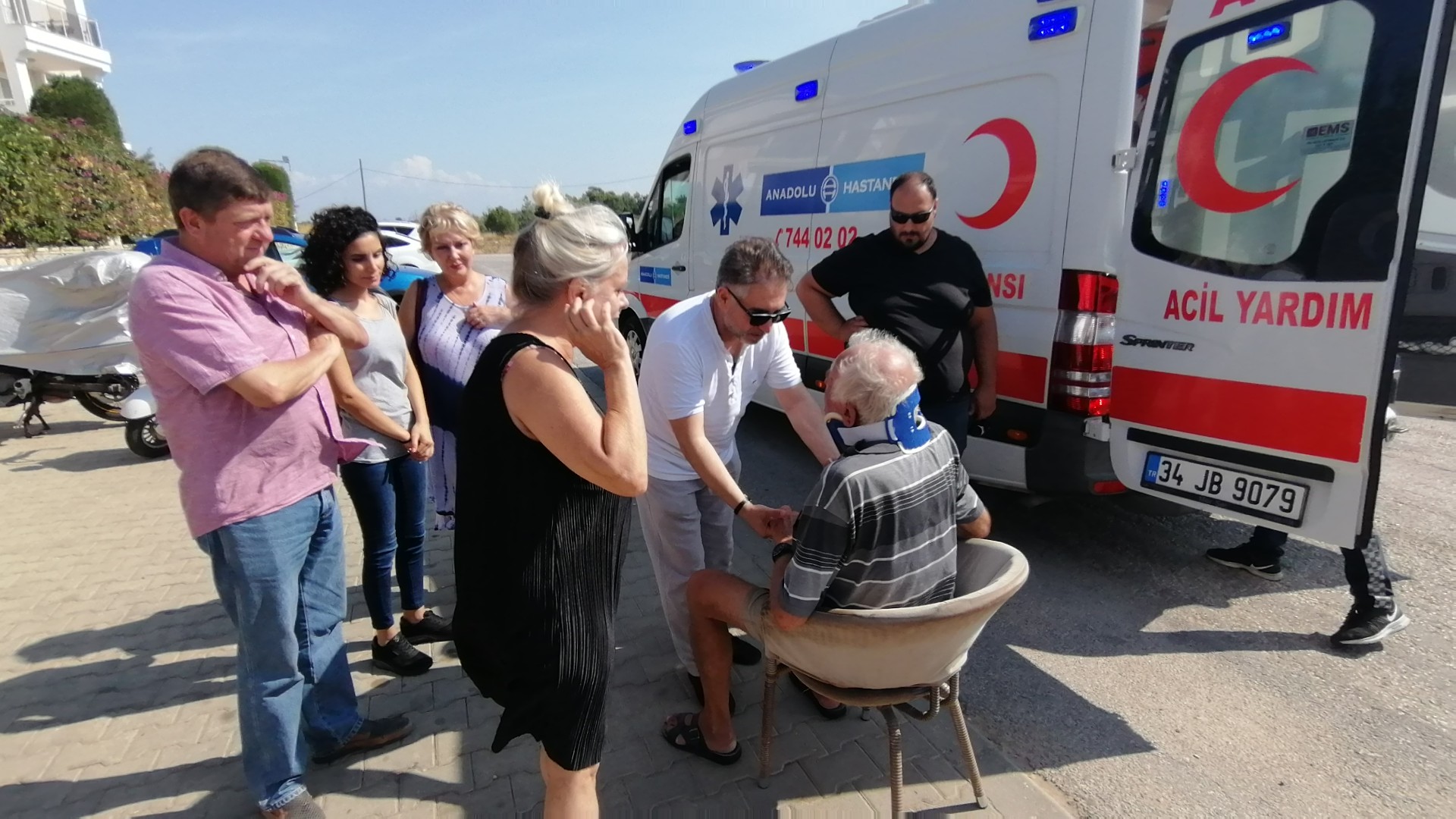 Uzun ve tehlikeli bir yolculuğun ardından Side Mahallesi Kemer mevki'inde bulunan ve çoğunluğu yabancıların ikamet ettiği sitenin önüne gelen yaşlı adam, aniden yere yığılıp kaldı. Yaşlı adama ilk müdahale site sakinleri ve sitede ikamet etmekte olan bir doktor tarafından yapıldı. Yaşlı adam olay yerine çağrılan ambulans ile Side’de bulunan bir özel hastaneye kaldırıldı.