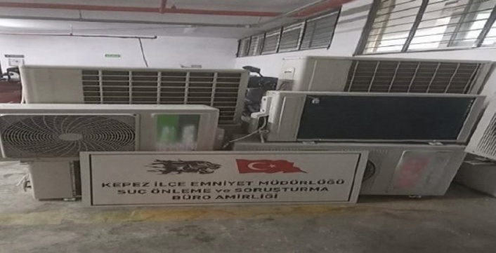 Kepez'de farklı tarihlerde meydana gelen “Klima Dış Ünitelerinin Çalınması” olayları ile ilgili yapılan çalışmalarda hırsızlık olaylarının şüphelilerinin (M.A.), (H.C.D.) ve (U.A.) isimli şahıslar olduğu tespit edildi. Şahısların yakalanmasına yönelik yapılan operasyonda (U.A.) isimli şahıs yakalanırken çalmış oldukları 8 adet klima dış ünitelerini (G.D) isimli şahsa sattıkları tespit edildi. (G.D) hakkında “Suç Eşyasının Satın Alınması Veya Kabul Edilmesi” suçundan adli işlem yapılırken suç eşyası olduğu tespit edilen 8 adet klima dış ünitesi sahiplerine teslim edildi. -İHA