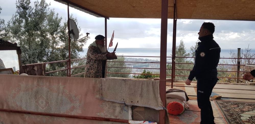 Devreye giren Alanya Emniyet Müdür Yardımcısı Cengiz Usta, yaşlı adamla konuşarak, mutfak tüpünü söndürmesi konusunda ikna etti. O esnada terasa çıkan çevik kuvvet ekiplerini fark eden yaşlı adam, elinde bulunan ekmek bıçağını boğazına dayadı ve terası boşaltmamaları halinde kendisine zarar vereceğini söyledi. Emniyet amiri bir kez daha devreye girerek yaşlı adamla konuşmaya başladı. O esnada evin arka tarafından terasa çıkan iki polis, yaşlı adamın arkasından yaklaşarak etkisiz hale getirdiler. Emniyet Müdür Yardımcısı Cengiz Usta, yaşlı adamın yanına giderek kendisine sarıldı ve sakinleştirdi.Bölgede bulunan yıkım ekipleri ise ilk olarak evin içinde bulunan eşyaları dışarı çıkarttı ve yıkım işlemi başlatıldı. Yıkım sırasında yaşlı adamın evinin bahçesine eşi ve kendisine ait iki mezar yaptırdığı gözlendi.