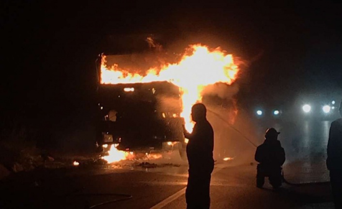 Olay, saat 21.30 sıralarında Alanya ile Gazipaşa ilçesi arasında bulunan Harçvel mevkiinde meydana geldi. Edinilen bilgiye göre, Alanya’dan Gazipaşa istikametine seyir halinde olan Abdülkerim B. idaresindeki 33 LF 181 plakalı hafriyat kamyonun sağ ön lastiği patladı. Sürücü Abdülkerim B. kamyonu güvenli şekilde yolunda dışına park edip araçtan indi. Bu sırada kamyonun sağ tekerleğin bulunduğu kısımda yangın başladı. İhbar üzerine olay yerine polis ve jandarma ile Antalya Büyükşehir Belediyesi Gazipaşa ve Alanya İtfaiye Birimi ekipleri sevk edildi. İtfaiye ekipleri yangını yaklaşık bir saatlik çalışma sonucunda söndürdü. Yangında alev topuna dönen kamyon kullanılamaz hale geldi. Karayolunun Alanya – Gazipaşa istikametinde ulaşım bir süre tek şeritten kontrollü olarak sağlandı.