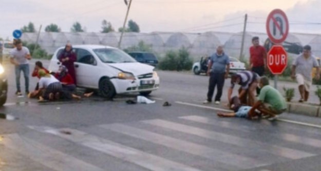 Alanya'da duran otomobile arkadan çarpan motosiklet...