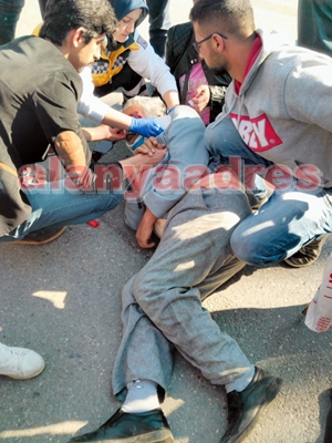 Edinilen bilgiye göre bugün öğle saatlerinde Çevreyolu üzeri Sanayi Kavşağı'nda bir kaza yaşandı. Karşıdan karşıya geçmeye çalışan yaşlı bir adama hızla gelen Doğan marka gri bir araç çarptı. Elinde bastonu ile karşıya geçmeye çalışan yaşlı adam, çarpmanın etkisiyle yolun kenarına fırladı. Kafasını yere çarpan yaşlı adama ilk müdahale çevredeki vatandaşlar tarafından yapıldı. Kafasındaki kanamayı göre bazı vatandaşlar büyük panik yaşadılar. Olay yerine çağrılan ambulans ekipleri yaşlı adamı Alanya Eğitim ve Araştırma Hastanesi'ne götürdüler. Yaşlı adamın hayati riskinin devam ettiği öğrenildi.