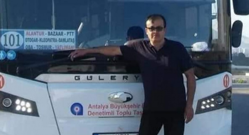 Alanya’da halk otobüsü şoförü Hasan Kır, geçirdiği kalp krizi sonucu hayatını kaybetti.