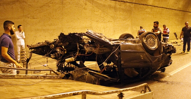 Edinilen bilgiye göre, Alanya’nın ilçe girişindeki tünellerde saat 01.15 sıralarında meydana gelen kazada 2 kişi hayatını kaybetti. Antalya istikametine seyreden ve aşırı hız yaptığı iddia edilen 43 yaşındaki Reşat Gürbüz idaresindeki 06 ZA 119 plakalı otomobil bariyerlere çarptı. Çarpmanın şiddetiyle otomobil ikiye bölündü. Otomobilin yarısı çarptığı bariyerin önünde kalırken diğer bölümü çarpmanın şiddetiyle yaklaşık 20 metre uzaklığa savruldu.