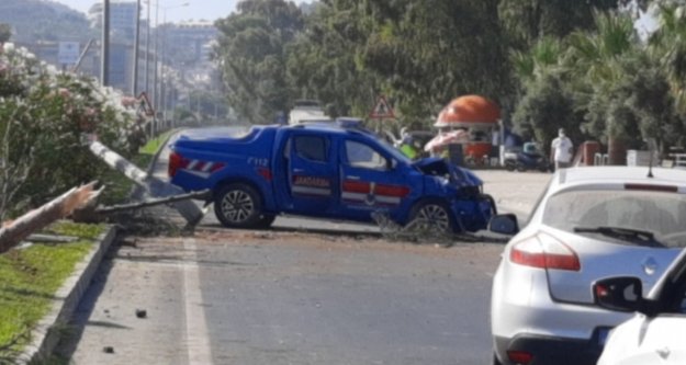 Alanya’da kontrolden jandarma aracı takla atarak durabildi. Kazada 2 asker yaralandı.
