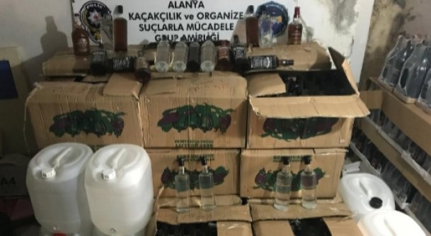 Alanya'da polisin yaptığı baskında çok sayıda kaçak içki ele geçirildi.