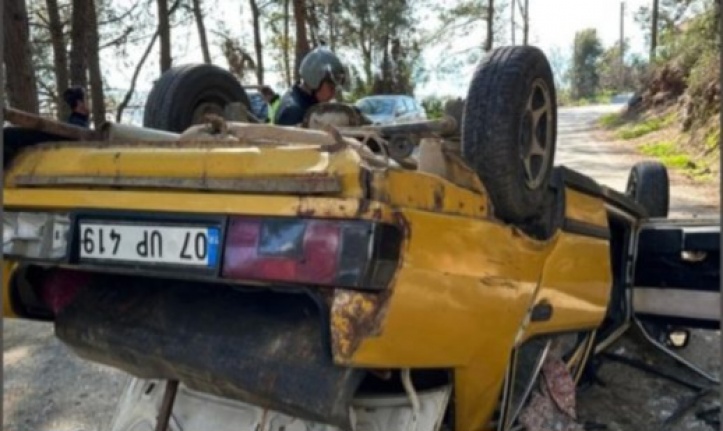 Alanya'da kayalıklara çarpıp takla atarak kurtuldu