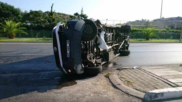 Kaza sonrası araç yoldan kaldırılırken turistler başka bir araçla yollarına devam ettiler.