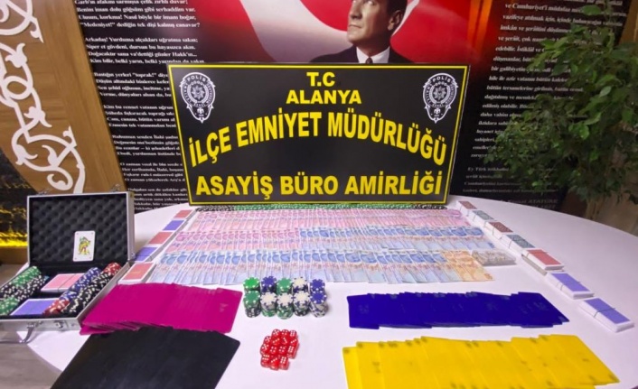 Alanya İlçe Emniyet Müdürlüğüne bağlı ekipler, kooperatif faaliyeti yürüten bir iş yerinde kumar oynandığı bilgisi üzerine harekete geçti. İş yerine düzenlenen operasyonda; masa üstlerinde çok sayıda poker pulu, iskambil ile poker kağıdı ve para olduğu belirlendi. Kumar oynadığı tespit edilen 8 kişi hakkında işlem yapılırken, iş yerinde bulunan 44 şahsın Genel Bilgi Toplama Sistemi (GBT) üzerinden sorgulaması yapıldı. Yapılan sorgu neticesinde 1 şahsın silahla tehdit suçundan aranma kaydı olduğu anlaşıldı. İş yeri sorumlusu olduğu belirlenen Y.Ş.B. ve N.F. hakkında "kumar oynanması için yer ve imkan sağlama" suçundan adli işlem yapılarak iş yeri mühürlendi.