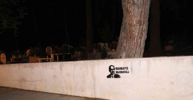 Alanya'da bulunan mezarlık duvarına CHP Genel Başkanı Kemal Kılıçdaoğlu’nun silüeti ve ‘Seninleyiz Kılıçdaroğlu’ yazılı şablon baskı yapıldı.