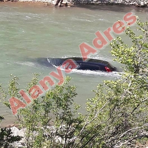 Alanya Çayarası Mevki'nde yaşanan olayda bir otomobil Gödüre Çayı'na gömüldü.