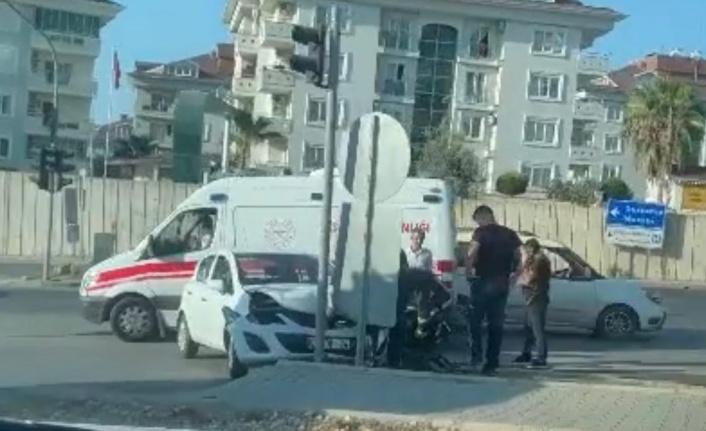 Alanya'da otomobil sinyalizasyon direğine çarptı