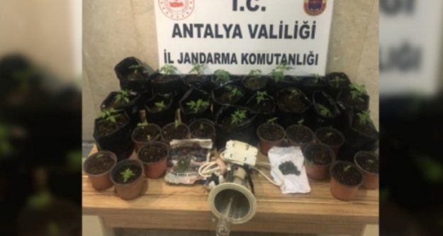 Alanya’da ısıtma ve ışıklandırma sistemi kurularak, kenevir yetiştirilen eve jandarma tarafından baskın düzenlendi. Evde saksıya ekili 31 kök Hint kenevir ile bir miktar esrar ele geçirildi.