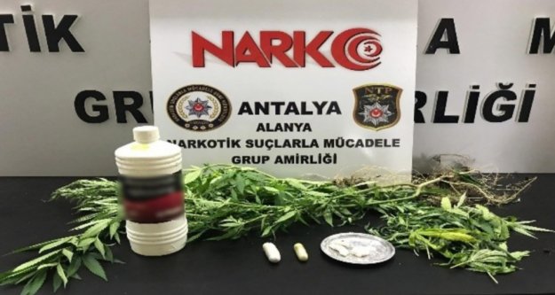 Alanya Cumhuriyet Başsavcılığı koordinesinde Alanya İlçe Emniyet Müdürlüğü Narkotik Suçlarla Mücadele Grup Amirliği ekipleri, uyuşturucu madde ticaretinin ve kullanımının engellenmesine yönelik çalışmalarını sürdürdü. Ekiplerin yaptıkları çalışmalarda Aydın D. (33) isimli şüphelinin uyuşturucu ticareti yaptığı bilgisine ulaştı. Tespit üzerine harekete geçen ekipler, şüphelinin Saray Mahallesi'ndeki adresine baskın düzenledi. Baskında 9.11 gram toz kokain, 9.62 gram taş kokain, 7.4 gram esrar, plastik şişe içerisinde 1 litre amonyak ve 2 kök Hint keneviri ele geçirdi. Adreste bulunan Aydın D. ve Veysel D. (26) gözaltına alındı. Şüphelilerin emniyetteki işlemlerinin sürdüğü öğrenildi. Güncelleme Tarihi: 25 Temmuz 2019, 22:28