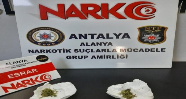 Alanya Cumhuriyet Başsavcılığı koordinesinde Alanya’da uyuşturucu madde ticaretinin ve kullanımının engellenmesine yönelik Alanya Emniyet Müdürlüğü Narkotik Suçlarla Mücadele Grup Amirliği operasyon yaptı. Güllerpınarı Mahallesi, Mollaosman Caddesi üzerinde durumundan şüphelenilerek durdurulan B. K. ve B. U. isimli şahıslardan 1,70 gram esrar maddesi ele geçirildi. Şahısların uyuşturucu maddeyi satın aldığını beyan ettikleri E. A. isimli şahıs ise Cumhuriyet Mahallesi’nde bulunan işyerinde yakalandı, şahıstan 1,95 gram esrar maddesi ele geçirildi. Nöbetçi Cumhuriyet Savcısı talimatı gereği B. K. ve B. U. isimli şahıslara uyuşturucu madde bulundurmak ve kullanmak suçundan işlem yapılarak serbest bırakılırken, E.A. isimli şahsa ise uyuşturucu madde ticareti yapmak suçundan işlem yapıldı. Şahsın bugün Alanya Adliyesi’ne sevk edilecekleri bildirildi.