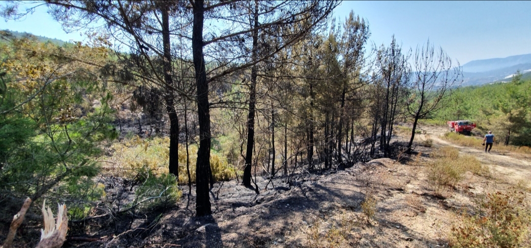 Henüz çıkış nedeni belirlenemeyen yangın rüzgarın ve sıcak havanın etkisiyle kısa sürede büyüdü. Dumanların yükseldiğini gören çevredekiler durumu 112 Acil Çağrı Merkezine bildirdi. İhbar üzerine bölgeye 1 helikopter, 4 arazöz, 3 itfaiye aracı ile 30 personel yönlendirildi. Söndürme çalışmalarının yaklaşık 3 saat sürdüğü yangın kontrol altına alınarak söndürüldü. Söndürülmenin ardından ekipler soğutma çalışmasına geçti. Yangın sonrası onlarca kaplumbağanın da telef olduğu görüldü.