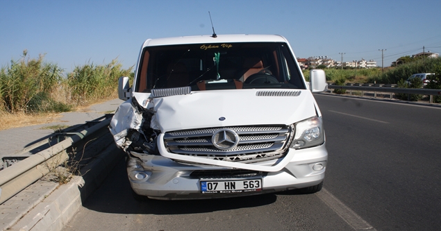 Manavgat- Alanya yolunda bir transfer firmasına ait minibüsün turistleri taşıyan safari cipine çarpması sonucu meydana gelen kazada 8 turist yaralandı.