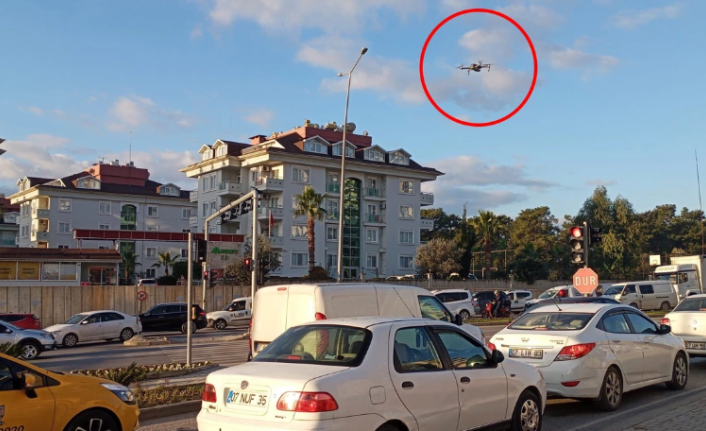 Alanya’da jandarma tarafından drone ile yapılan denetimde kırmızı ışıkta geçen ve seyir halinde iken cep telefonu ile konuşan 23 sürücüye 34 bin 638 TL cezai işlem uygulandı.