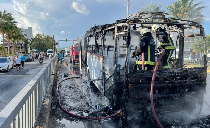 Alanya'da, seyir halindeki öğrenci servis midibüsü alev alev yandı. Midibüs şoförü kendini dışarıya atarken, aracın içerisinde öğrenci olmaması büyük bir facianın önüne geçti.