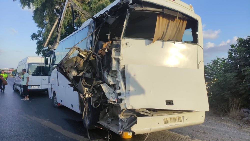 Alanya’da tur otobüsü servise çarptı