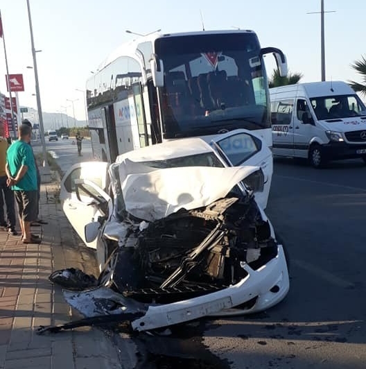 Kaza, saat 07.00 sıralarında Mahmutlar Mahallesi D-400 karayolu üzerinde meydana geldi. Demirtaş Mahallesi istikametin Alanya’nın merkezine seyir halinde olan Özlem Adana otobüs firmasına ait Yusuf Taze (55) yönetimindeki 01 UB 777 plakalı şehirlerarası yolcu otobüsü Taner Karlı’nın (38) kullandığı 07 NMV 04 plakalı otomobille çarpıştı. Çarpmanın şiddetiyle sürücü Karlı ağır yaralandı. İhbar üzerine olay yerine gelen sağlık ekipleri yaralı Karlı’yı ambulansla Alanya Aladdin Keykubat Üniversitesi Eğitim ve Araştırma Hastanesine götürdü.