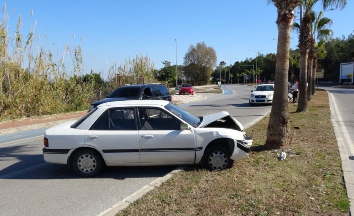 Alkolden ehliyeti iptal edilen sürücü otomobille palmiyeye çarptı