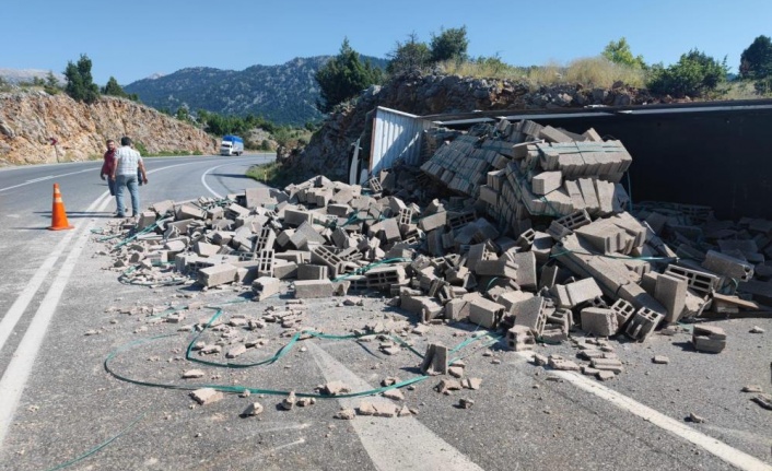 Antalya’nın Akseki ilçesinde briket yüklü tırın devrilmesi sonucu sürücü yaralandı.