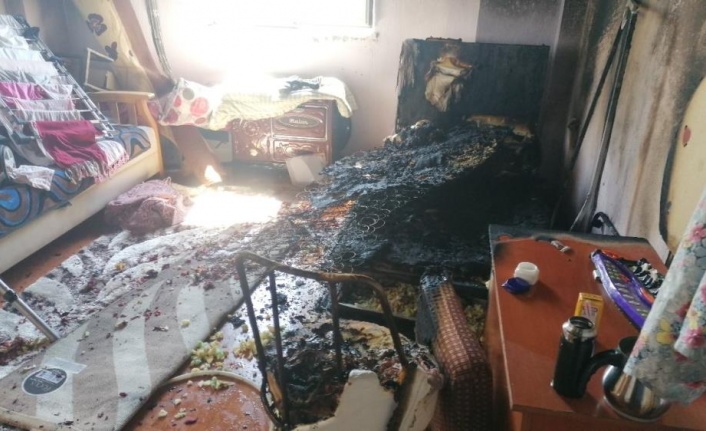 Apartman dairesinde çıkan yangında çocuk odası tamamen yandı