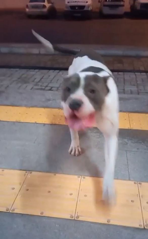 Aracın çarptığı pitbulldan videosunu çeken vatandaşa ‘iyiyim’ pozu
