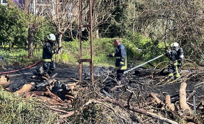 Bahçedeki odunlukta çıkan yangın, eve sıçramadan söndürüldü
