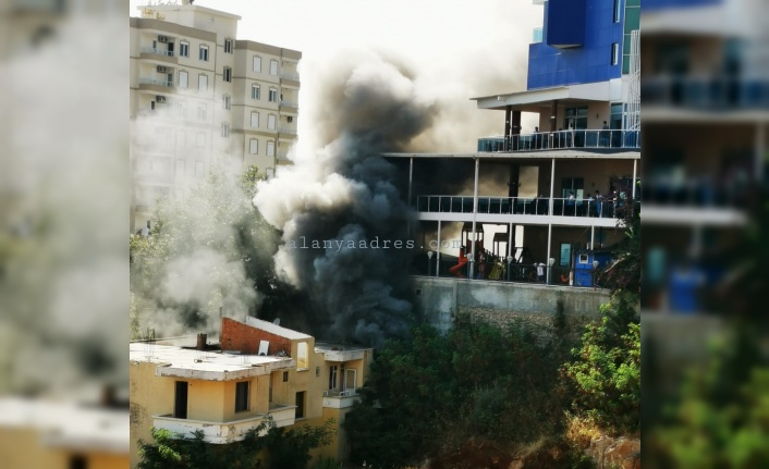 Alanya'nın Tosmur Mahallesinde bir evde yangın çıktı. Alevler ve duman çevredeki otelleri tehdit ediyor.