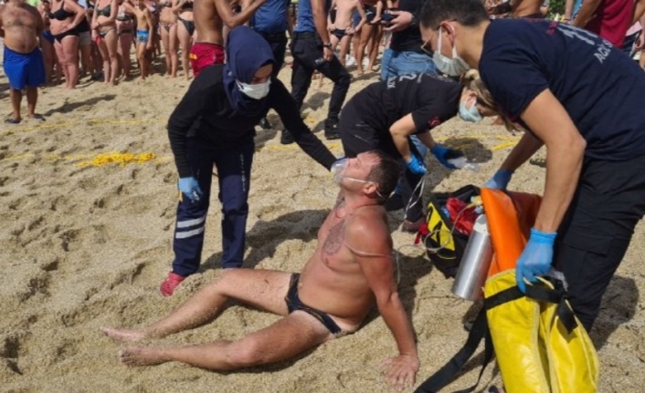 Alanya'nın Damlataş Plajı'nda saat 12.30 sıralarında denize giren 34 yaşındaki Rus turist Andrei Golovanov, 200 metre açıkta dalgaların arasında kaldı. Çevredeki vatandaşlar, açıkta çırpınan Rus turisti görünce durumu polis ve sağlık ekiplerine haber verdi. Aşırı dalgaya rağmen denize giren Rus turisti kurtarmak için bölgede bulunan cankurtaran Mümin Solmaz hemen paletlerini giyerek yanına aldığı iple denize atladı. Kısa bir süre sonra boğulma tehlikesi geçiren Rus turistin yanına giden cankurtaran, turisti kıyıya çıkarmayı başardı. Plajdaki turistler kıyıya çıkan cankurtaranı alkışladı. Rus turiste ilk müdahaleyi ise kıyıda bekleyen acil sağlık ekipleri yaptı. Kısa bir süre sonra kendine gelen Rus turist, hayatını kurtaran cankurtarana sarılarak teşekkür etti.