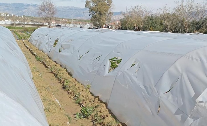 Çilek serasının naylonlarını kesip paramparça ettiler