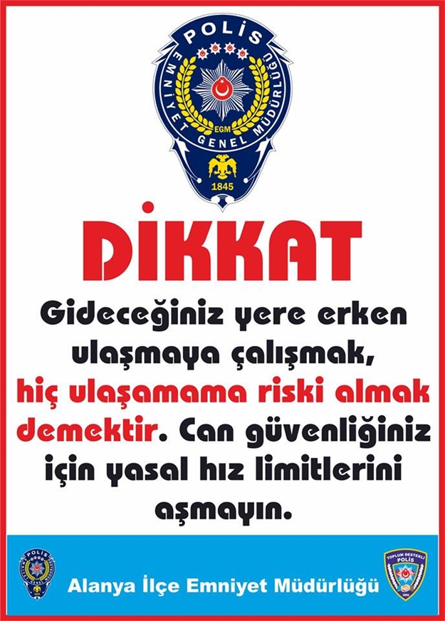Alanya Polisi yaklaşan Ramazan Bayramı öncesi sürücüler hız limiti uyarısında bulundu.