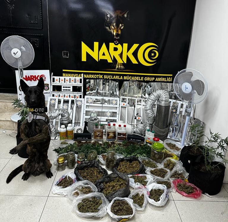 Antalya’nın Manavgat ilçesinde M.G.’nin evinde uyuşturucu madde imal ettiği bilgisi üzerine Manavgat İlçe Emniyet Müdürlüğü Narkotik Suçlarla Mücadele Grup Amirliği ekipleri adrese operasyon düzenledi. Aşağı Pazarcı mahallesinde bulunan ikamete düzenlenen operasyonda narkotik madde arama köpeği Pars ile yapılan aramalarda iki odada uyuşturucu madde yetiştirildiği belirlendi. Aramalar sonucunda 70 kök Hint keneviri, 28 paket esrar ele geçirildi. Uyuşturucu madde ticareti yapma veya sağlama suçundan gözaltına alınan M.G, emniyetteki işlemlerinin ardından adliyeye sevk edildi. M.G, çıkarıldığı mahkemece tutuklanarak cezaevine gönderildi.