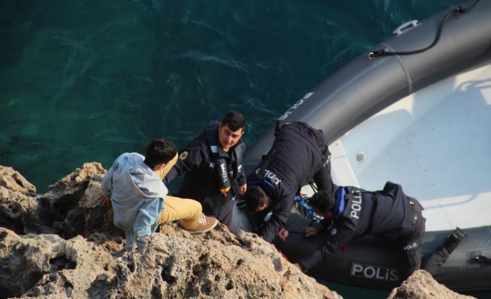 Deprem bölgesi Diyarbakır’dan ailesiyle Antalya’ya gelen 15 yaşındaki çocuk, falezlerde mahsur kaldığı kayalık alandan deniz polisince kurtarıldı.